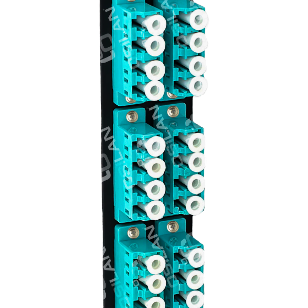LGX FAP-STYLE fibre adapter plate with 6 Quad LC/UPC multimode fibre optic adapters,24 fibre core, Zirconia ceramic ferrules, Aqua