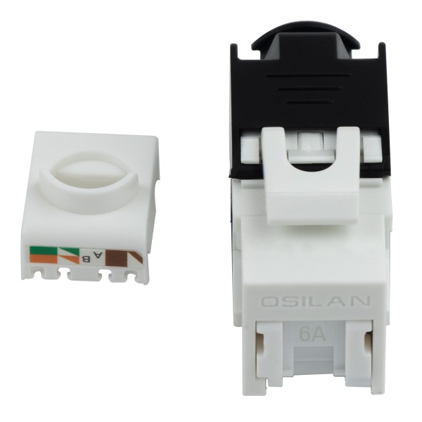 OSILAN Cat6A snap-in jack modules complete Category 6A/Class EA components and performance. The RJ-45 jack modules are suitable for mounting in a range of housings from patch panels, faceplates, floor boxes, and work area distribution enclosures.