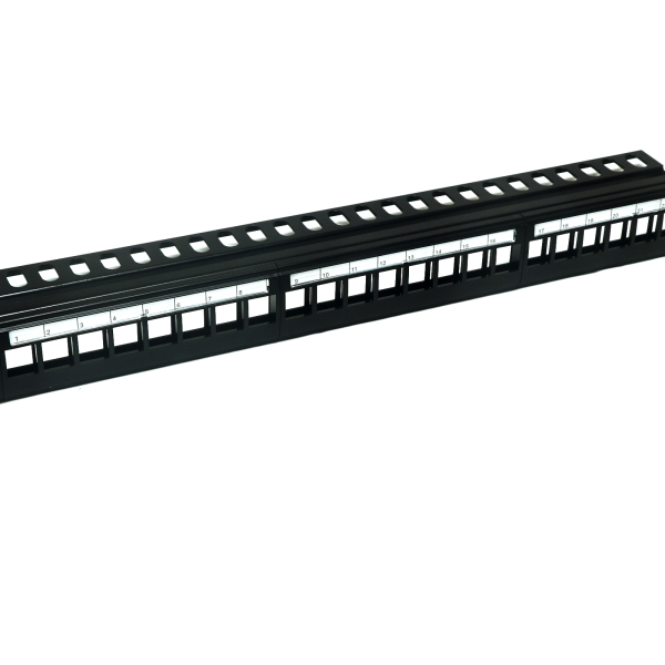 Category 6, 24 Port Modular Patch Panel Empty, 1U Sizes, 19”, Accept Unscreened 24 Jack Modules, Black